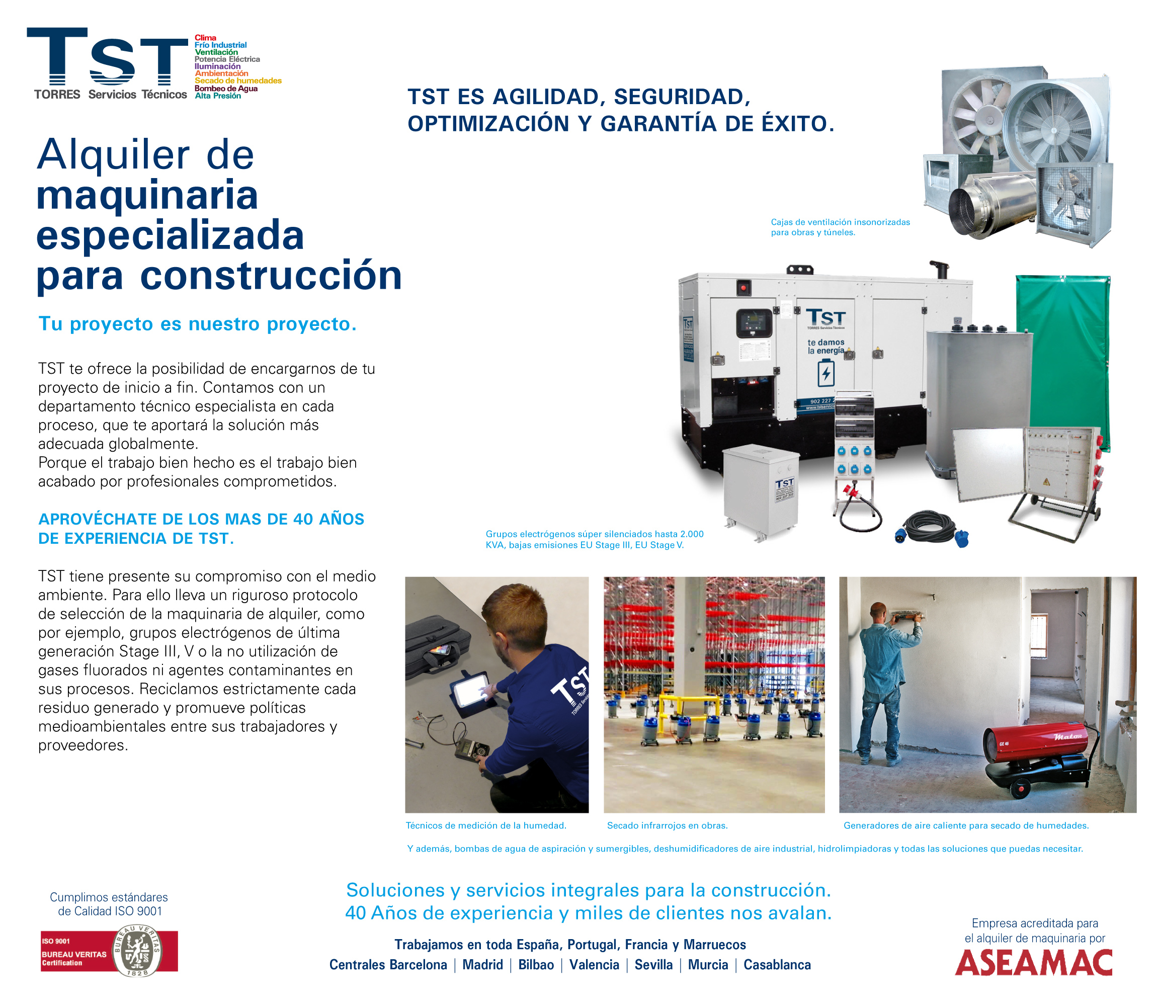 TST Servicios Técnicos empresa líder en el alquiler de maquinaria para instalaciones temporales de cualquier tipo de necesidad urgente, puntual o para largas temporadas.
