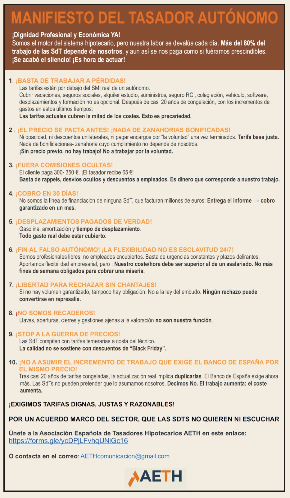 indignas y atacan directamente la objetividad del acto profesional.Además de reclamar unas condiciones laborales dignas, justas y razonables para los tasadores hipotecarios, este Consejo General seguirá impulsando las acciones para que el reglamento que debe regular la figura del tasador homologado independiente, que lleva cinco años de retraso, se apruebe