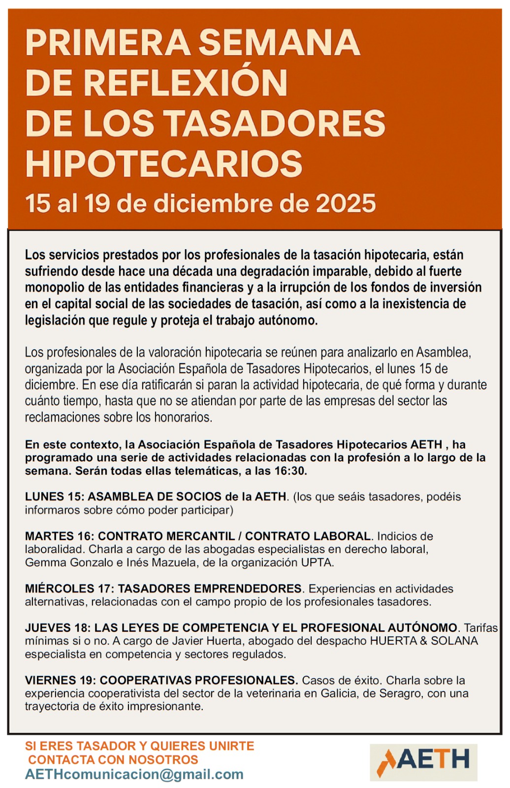 que se viene produciendo una situación de infravaloración de los servicios profesionales y abuso de poder por parte de las Sociedades de Tasación.La tasación es una parte fundamental a la hora de facilitar el acceso a la financiación de una vivienda y tiene una incidencia directa en la misma. España es el único país de la UE que no tiene implementada la figura del Tasador Homologado Independiente, a pesar de estar contemplada en la Ley de Crédito Inmobiliario desde 2019. Precisamente esta condición de independencia, que es una